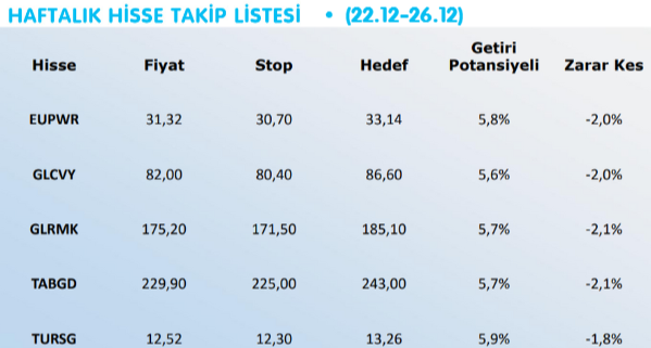 Colendi Menkul Haftalık Hisse Önerileri – (22-26 Aralık 2025)