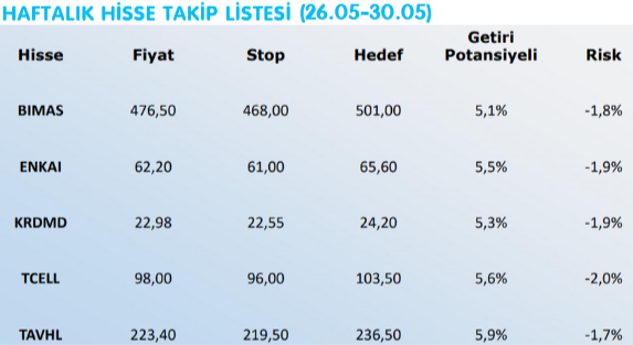 Colendi Menkul Haftalık Hisse Önerileri – (26-30 Mayıs 2025)