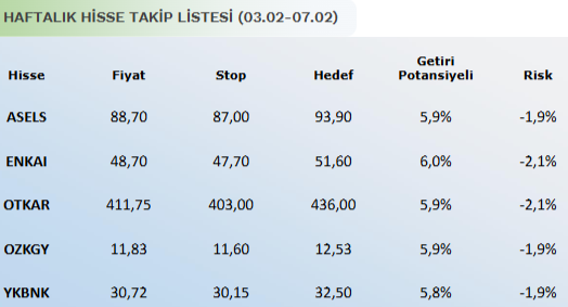 Teknik olarak 9 haftalık 9700-10200 arası yatay bant devam etti. 10 bin etrafında dalgalanan endekste bugünkü TÜFE rakamlarına göre bandın alt veya üst tarafına doğru ivme görülebilir. Yukarı yönde ara hedef olarak 10250-10450 bandı bulunurken, bu bölgenin üzerinde büyük zaman dilimindeki arz bölgesi olan 10800-10900 seviyesine kadar ivmenin devam etmesi beklenebilir. Yeni çekilmelerde ise 9900-9850 seviyeleri destek olarak izlenebilir.