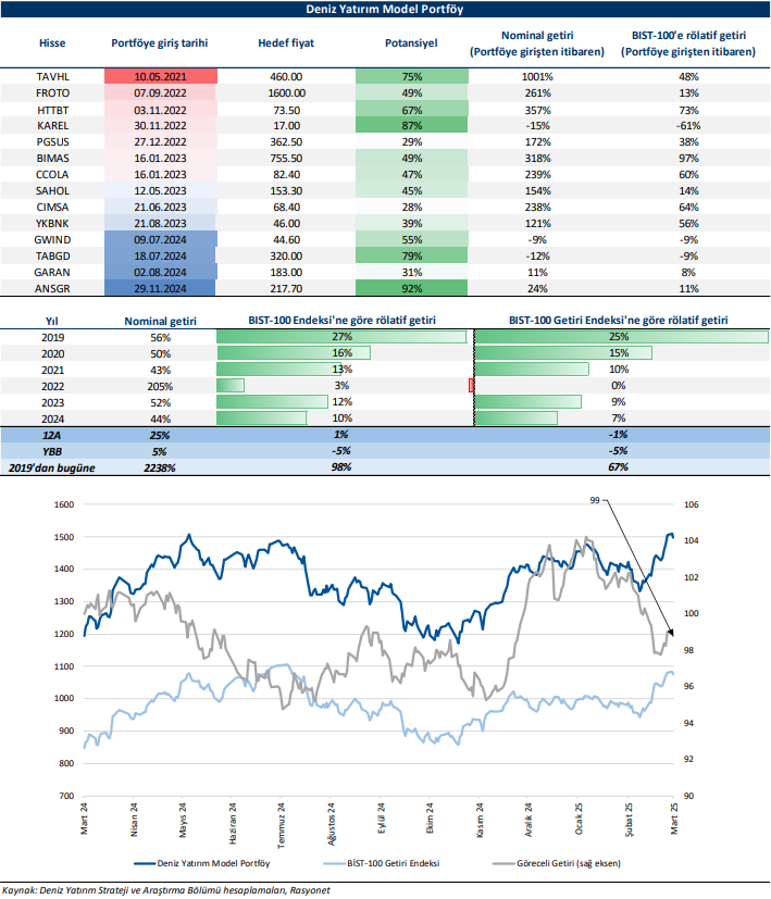 Deniz Yatırım Model Portföy Önerileri – (19.03.2025)