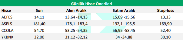 Rusya’da Citibank’ın, Rusya kökenli ancak İngiltere merkezli bir şirkete satışına onay verilmesi, Anadolu Efes’in Rusya’daki bağlı ortaklığına ilişkin çözüm beklentilerini artırabilir. Bankacılık sektöründe ise üçüncü çeyrekte en güçlü finansalları açıklayan Yapı Kredi Bankası’nın, olası tepkide ön plana çıkması beklenebilir. Artan iş bakiyesi ve güçlü finansalları sonrasında yaşadığı geri çekilme nedeniyle Aselsan’a, operasyonlarında yeniden reel büyümeye dönen Coca-Cola ile birlikte günlük öneri listemizde yer veriyoruz.