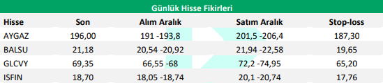 Rusya’ya yönelik yaptırımların petrol ve ürünleri arzının azaltmasının ürün fiyatlarına olumlu etkisi nedeniyle Aygaz’ı, faktoring gelirlerinde güçlü etkisini finansallarına yansıtan İş Finansal Kiralama’yı, sorunlu kredilerin artışından olumlu yönde etkileyen Gelecek Varlık Yönetimi ile üçüncü çeyrekten itibaren fındık fiyatlarında olan olumlu etkisini göstermesini beklediğimiz Balsu Fındık’ı günlük hisse fikirlerinde yer veriyoruz.