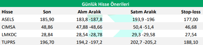 Rusya’nın Ukrayna barış planı maddelerini kabul etmemesi, bölgedeki petrol arzına yönelik risklerin sürmesine neden olacaktır. Kasım ayında oldukça güçlü rafineri marjları açıklayan Tüpraş’ı, bölgesel jeopolitik risklerin devam etmesi nedeniyle ise Aselsan’ı yeniden ön plana çıkarıyoruz. Çimento sektöründe yaşanan hareketlilikle birlikte, ABD yatırımı devreye alınan Çimsa ile en düşük kârlılık çarpanlarıyla işlem gören Limak Çimento’yu da günlük öneriler listemize ekliyoruz.
