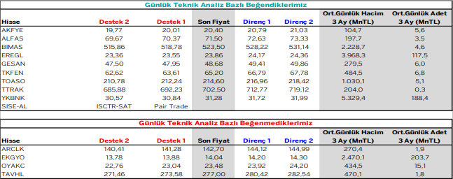 Günlük Teknik Analiz Bazlı Beğendiklerimiz / Beğenmediklerimiz