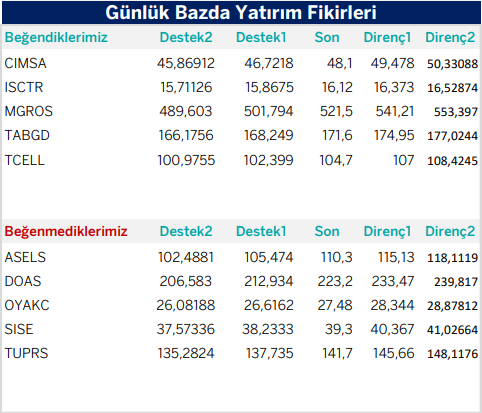 Günlük Teknik Analiz Bazlı Yatırım Fikirleri