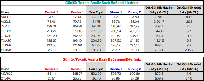 Günlük Teknik Analiz Bazlı Beğendiklerimiz / Beğenmediklerimiz