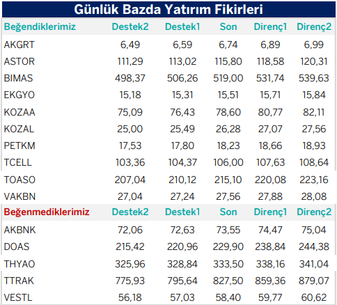 Günlük Teknik Analiz Bazlı Yatırım Fikirleri
