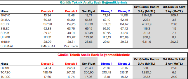 Günlük Teknik Analiz Bazlı Beğendiklerimiz / Beğenmediklerimiz