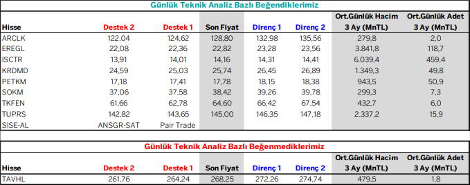 Günlük Teknik Analiz Bazlı Beğendiklerimiz / Beğenmediklerimiz