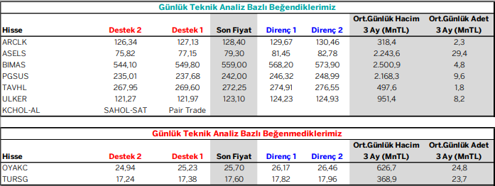 Günlük Teknik Analiz Bazlı Beğendiklerimiz / Beğenmediklerimiz