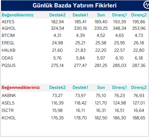 Günlük Teknik Analiz Bazlı Yatırım Fikirleri