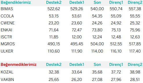 Günlük Bazda Yatırım Fikirleri’nde yer alan hisselerde günlük performans baz alındığından, yatırımcılar ilk aşamada %0.9-%2, ikinci aşamada %3.1-%4 aralıklarını pozisyon kapatma ve/veya kar alma seviyeleri olarak takip edebilirler.