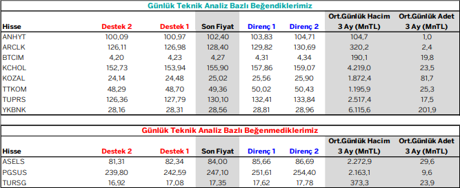 Günlük Teknik Analiz Bazlı Beğendiklerimiz / Beğenmediklerimiz