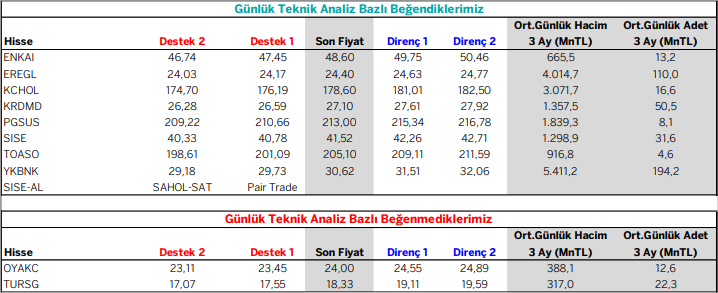 Günlük Teknik Analiz Bazlı Beğendiklerimiz / Beğenmediklerimiz