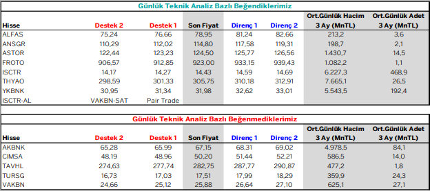 Günlük Teknik Analiz Bazlı Beğendiklerimiz / Beğenmediklerimiz