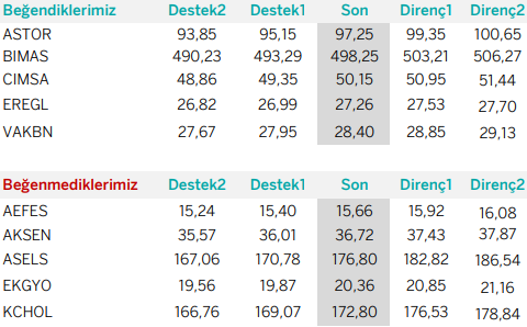 Günlük Bazda Yatırım Fikirleri’nde yer alan hisselerde günlük performans baz alındığından, yatırımcılar ilk aşamada %0.9-%2, ikinci aşamada %3.1-%4 aralıklarını pozisyon kapatma ve/veya kar alma seviyeleri olarak takip edebilirler.