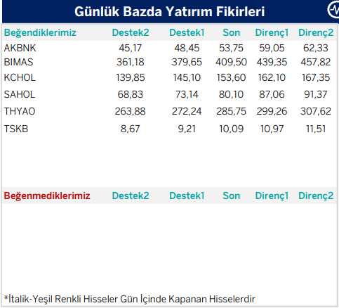 Günlük Teknik Analiz Bazlı Yatırım Fikirleri