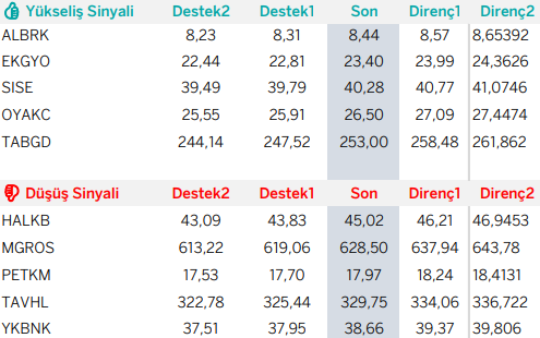 Günlük Bazda Yatırım Fikirleri’nde yer alan hisselerde günlük performans baz alındığından, yatırımcılar ilk aşamada %0.9-%2, ikinci aşamada %3.1-%4 aralıklarını pozisyon kapatma ve/veya kar alma seviyeleri olarak takip edebilirler.