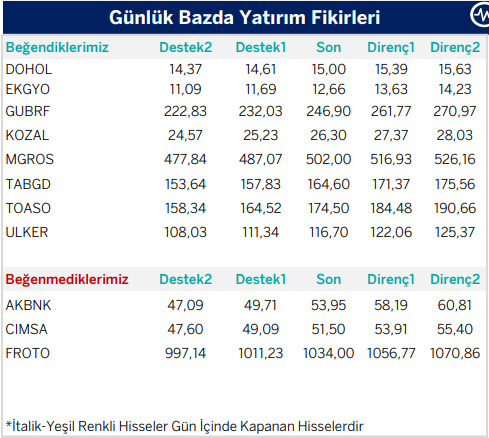 Günlük Teknik Analiz Bazlı Yatırım Fikirleri