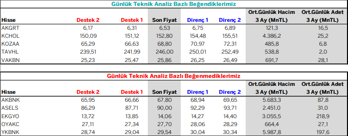 Günlük Teknik Analiz Bazlı Beğendiklerimiz / Beğenmediklerimiz