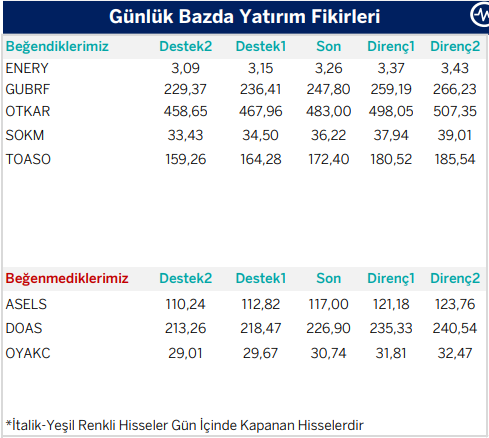 Günlük Teknik Analiz Bazlı Yatırım Fikirleri