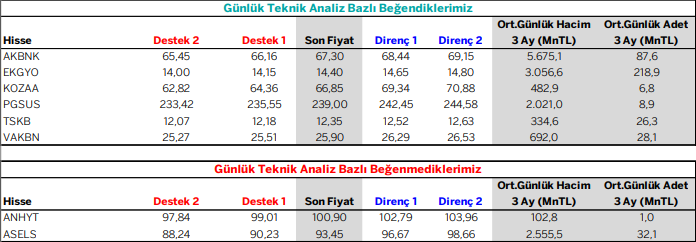 Günlük Teknik Analiz Bazlı Beğendiklerimiz / Beğenmediklerimiz