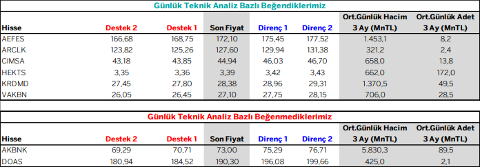 Günlük Teknik Analiz Bazlı Beğendiklerimiz / Beğenmediklerimiz