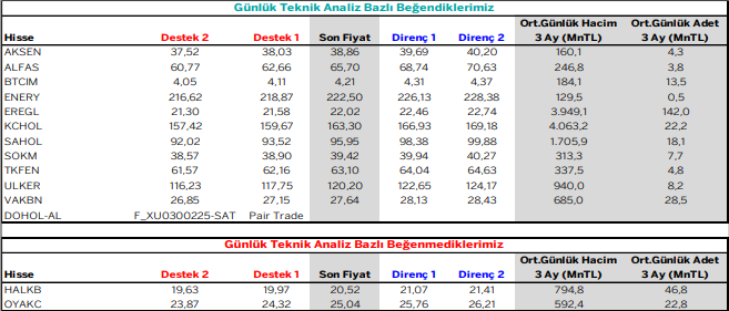 Günlük Teknik Analiz Bazlı Beğendiklerimiz / Beğenmediklerimiz