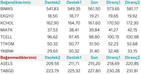 Günlük Bazda Yatırım Fikirleri’nde yer alan hisselerde günlük performans baz alındığından, yatırımcılar ilk aşamada %0.9-%2, ikinci aşamada %3.1-%4 aralıklarını pozisyon kapatma ve/veya kar alma seviyeleri olarak takip edebilirler.