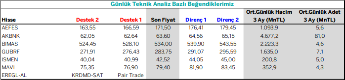 Günlük Teknik Analiz Bazlı Beğendiklerimiz