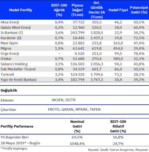 ➢ Model portföye Aksa Enerji ve İş Bankası’nı eklerken, Garanti Bankası, Ford Otosan, Medikal Park ve Tekfen’i çıkartıyoruz.