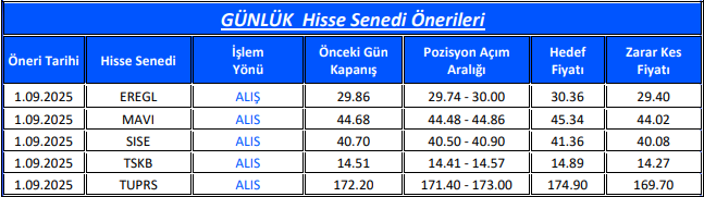 Gedik Yatırım Günlük Hisse Önerileri – (1.09.2025)