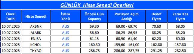 Gedik Yatırım Günlük Hisse Önerileri – (10.07.2025)