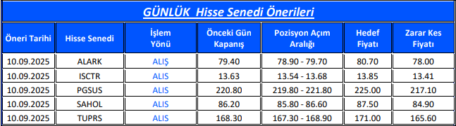 Gedik Yatırım Günlük Hisse Önerileri – (10.09.2025)