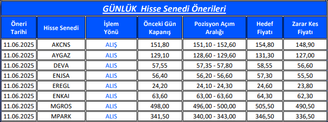 Gedik Yatırım Günlük Hisse Önerileri – (11.06.2025)