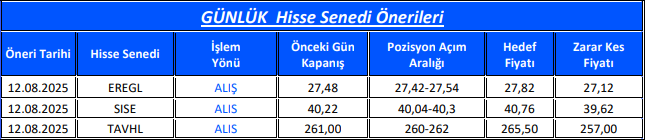 ➢ Önerilerin geçerlilik süresi raporda verilen tarihle sınırlıdır. Verilen tarih içinde hedef ve stop seviyesine ulaşmayan hisseler öneri bitiş tarihindeki kapanış fiyatından kapatılmış sayılır ve bunlar için ek bir bildirim yapılmaz.