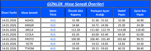 Günlük Hisse Senedi Önerileri