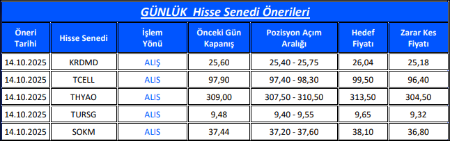 ➢ Önerilerin geçerlilik süresi raporda verilen tarihle sınırlıdır. Verilen tarih içinde hedef ve stop seviyesine ulaşmayan hisseler öneri bitiş tarihindeki kapanış fiyatından kapatılmış sayılır ve bunlar için ek bir bildirim yapılmaz.