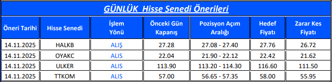 Gedik Yatırım Günlük Hisse Önerileri – (14.11.2025)