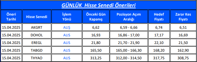 Günlük Hisse Senedi Önerileri