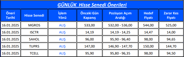 Kaynak: Gedik Yatırım Günlük Öneri Raporu
