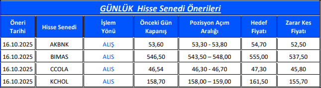 Gedik Yatırım Günlük Hisse Önerileri – (16.10.2025)