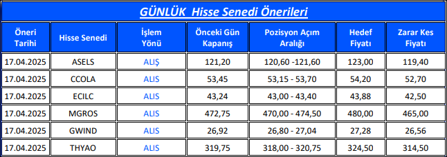 Günlük Hisse Senedi Önerileri