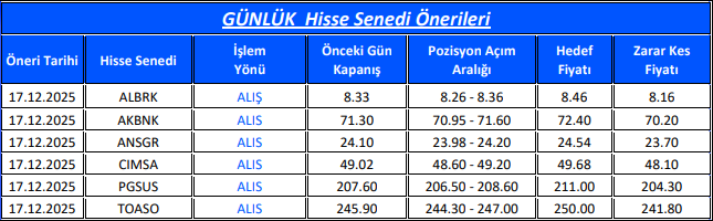 Kaynak: Gedik Yatırım Günlük Öneri Raporu