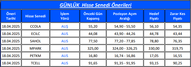 ➢ Önerilerin geçerlilik süresi raporda verilen tarihle sınırlıdır. Verilen tarih içinde hedef ve stop seviyesine ulaşmayan hisseler öneri bitiş tarihindeki kapanış fiyatından kapatılmış sayılır ve bunlar için ek bir bildirim yapılmaz.