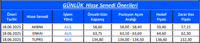 Gedik Yatırım Günlük Hisse Önerileri – (18.06.2025)