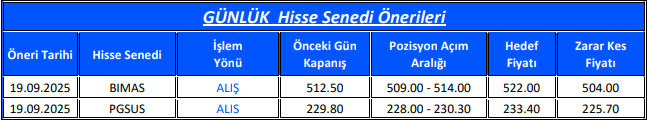 Gedik Yatırım Günlük Hisse Önerileri – (19.09.2025)