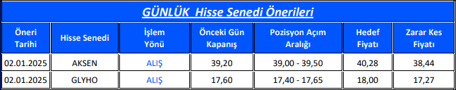 ➢ Önerilerin geçerlilik süresi raporda verilen tarihle sınırlıdır. Verilen tarih içinde hedef ve stop seviyesine ulaşmayan hisseler öneri bitiş tarihindeki kapanış fiyatından kapatılmış sayılır ve bunlar için ek bir bildirim yapılmaz.