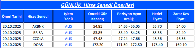 ➢ Önerilerin geçerlilik süresi raporda verilen tarihle sınırlıdır. Verilen tarih içinde hedef ve stop seviyesine ulaşmayan hisseler öneri bitiş tarihindeki kapanış fiyatından kapatılmış sayılır ve bunlar için ek bir bildirim yapılmaz.