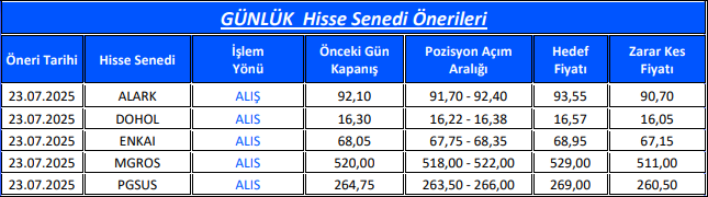 Kaynak: Gedik Yatırım Günlük Öneri Raporu